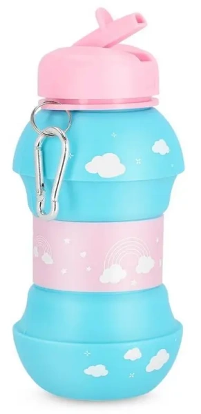 Składany bidon wykonany z silikonu, który nie pochłania zapachów i cechuje się dużą elastycznością. Bidon wyposażony jest w karabińczyk, ułatwiający przenoszenie produktu. Jest lekki, a po złożeniu zajmuje niezwykle mało miejsce i można przypiąć do do torby lub plecaka.