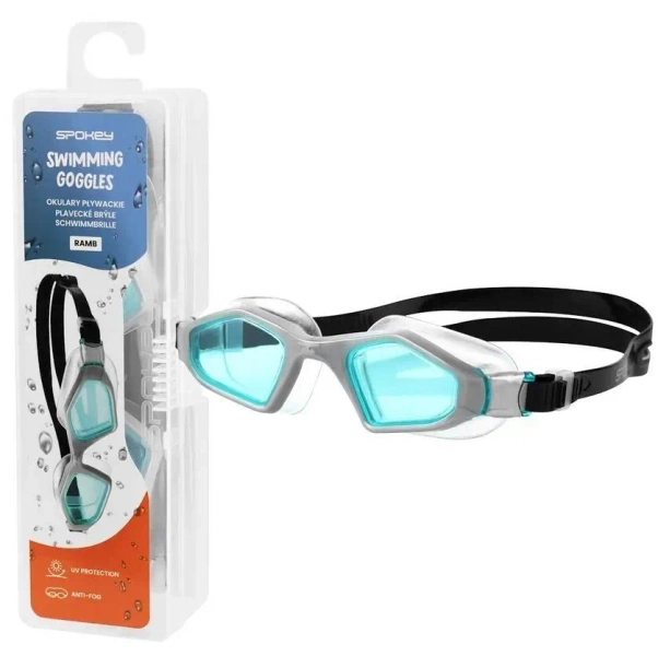 Okulary do pływania wykonane są z wytrzymałych materiałów. Wyposażone w system Antifog, dzięki któremu okularki nie parują, co zapewnia doskonałą jakość widzenia oraz w filtr przeciwsłoneczny UV, który chroni przed szkodliwym promieniowaniem. Dzięki miękkim, silikonowym uszczelkom, okulary optymalnie przylegają do twarzy, co zapobiega wpływaniu wody do środka okularów. Podwójny silikonowy pasek rozkłada naprężenia.