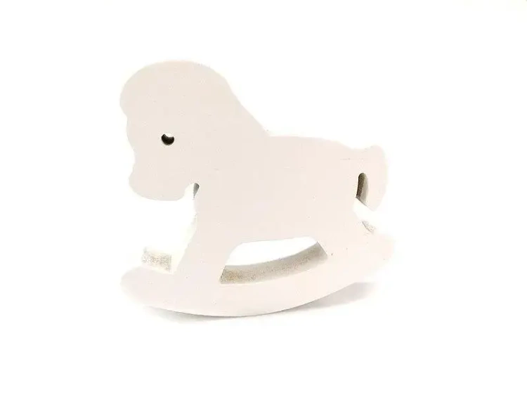 Dekoracja stojąca, biały koń na biegunach, drewniana; 16x15x2,5cm, ppb. .