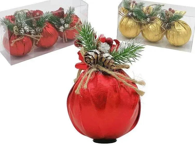 Bombka stroik 3szt. ; mix kolorów; wym. 8x12cm; pvcbox; bn ; 80. .