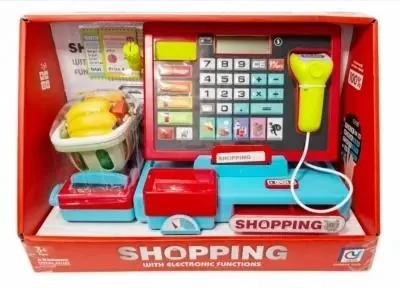 Kasa sklepowa z koszykiem i akcesoriami