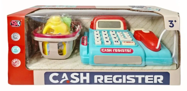 Zestaw kasa sklepowa z kalkulatorem i akcesoriami, w tym koszykiem z produktami. Produkt działa na baterie AA. Baterie nie są załączone do zabawki. Zabawka przeznaczona dla dzieci od lat 3. Zabawka zapakowana w kartonowe pudełko. Podane wymiary są wymiarami opakowania.