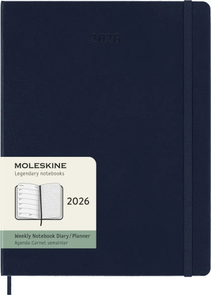 Kalendarz 2026 12M Moleskine XL tygodniowy twarda oprawa Sapphire blue 19x25cm