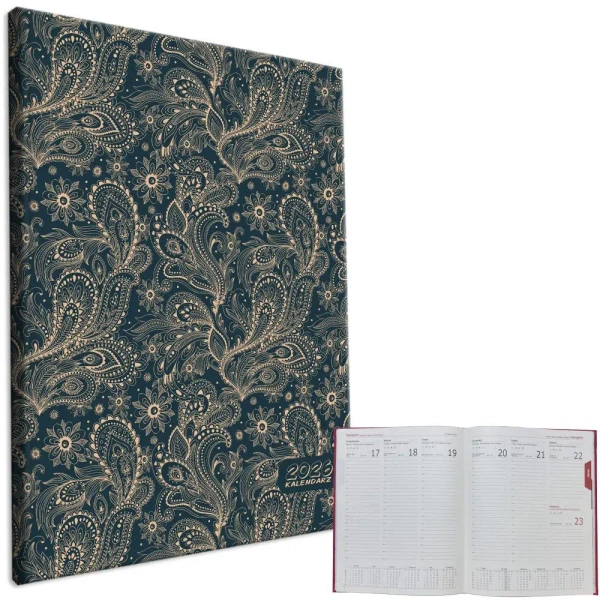 kalendarz formatu A4, układ tygodniowy, okładka aksamitna soft touch, papier chamois