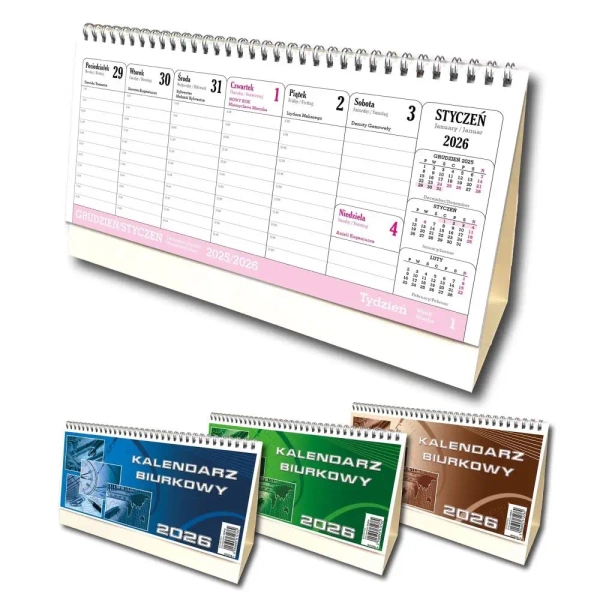 Kalendarz 2026 biurkowy poziom duży mix - EV-Corp