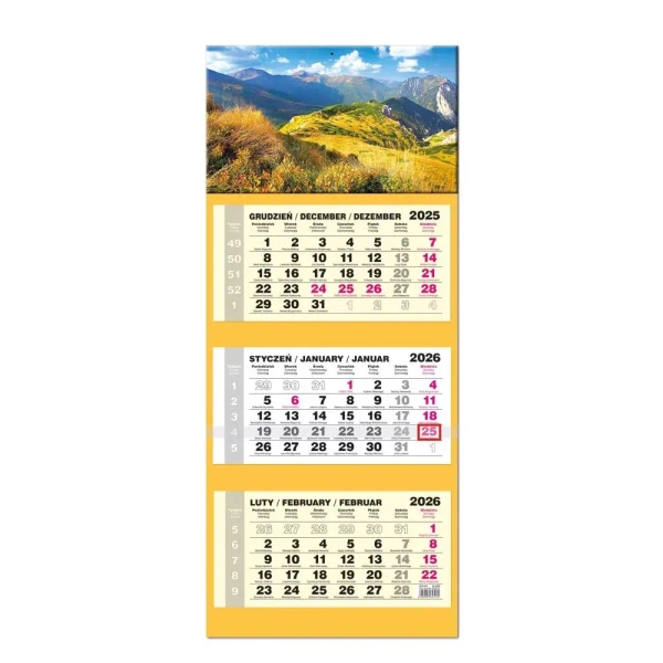 Kalendarz 2026 trójdzielny LUX gł. wypukła Tatry - EV-Corp