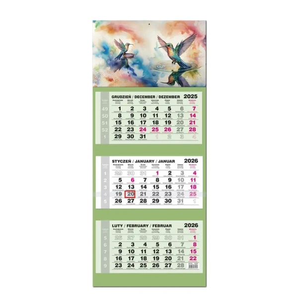 Kalendarz 2026 trójdzielny LUX gł. wypukła Koliber - EV-Corp