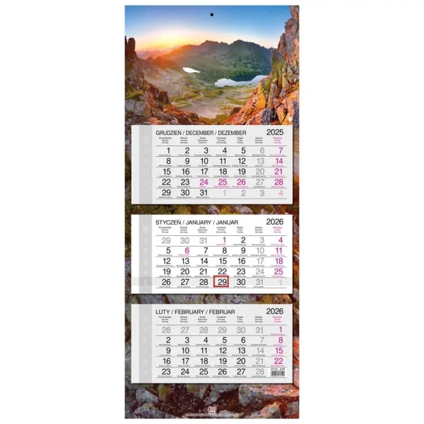 Kalendarz 2026 trójdzielny główka płaska Tatry - EV-Corp