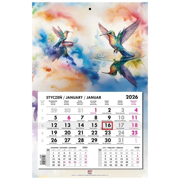 Kalendarz 2026 jednodzielny główka płaska Koliber - EV-Corp