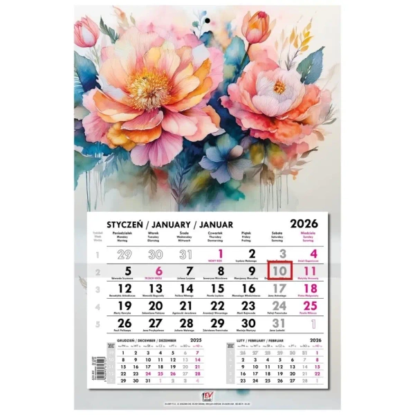 Kalendarz 2026 jednodzielny główka płaska Kwiaty - EV-Corp