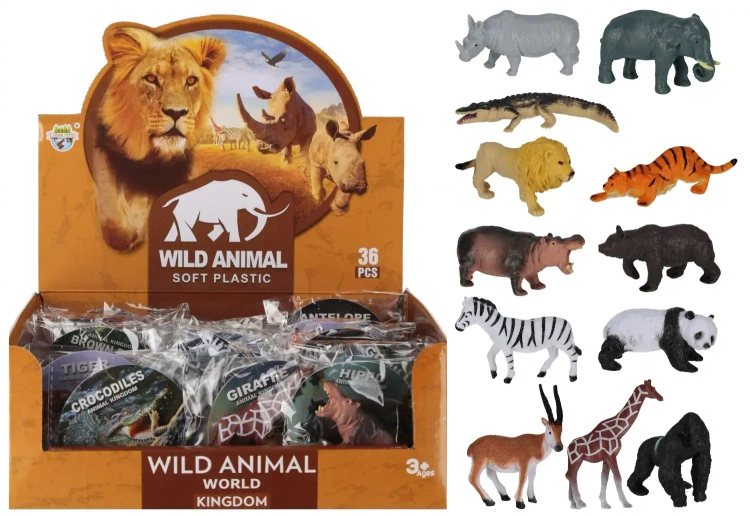 Zalety produktu rozwija kreatywność dziecka. Czas zabawić się w dżunglę Już od najmłodszych lat warto poznać zwierzęta zamieszkujące naszą planetę. Nie będzie to problemem z zestawem dzikich Zwierząt od MEGA CREATIVE Zbierz całą kolekcję dzikich zwierząt. Zawartość displaya Nosorożec, Goryl, Krokodyl, Antylopa, Tygrys, Zebra, Lew, Żyrafa, Niedźwiedź, Słoń, Hipopotam. Figurki wykonane z plastiku. Wymiary/waga/baterie wymiary produktu dł. cm 11 cm, wymiary opakowania dł. x wys. x gł. cm 10x9x3, wymiary opakowania display dł. x wys. x gł. cm 26x10x26, waga produktu w opakowaniu kg 0,04 kg, waga produktu w opakowaniu display kg 1,11 kg, nie wymaga zasilania bateriami. Zabawka przeznaczona dla dzieci w wieku 3 .Pakowana w folijkę w display po 36 szt. W kartonie zbiorczym po 720 szt.