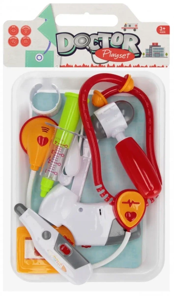 Zalety produktu pobudza wyobraźnie dziecka, nauka opieki nad chorym, rozwija kreatywność dziecka. MEGA CREATIVE przedstawia Zestaw Lekarski ze wszystkimi niezbędnymi przyrządami lekarskimi. Z tym zestawem, wszyscy pacjenci zostaną wyleczeni Zawartość zestawu taca, stetoskop, strzykawka, peseta, plaster, nożyk, łyżeczka, młoteczek, pulsopsymetr, termometr, identyfikator. Całość wykonana z plastiku. Wymiary/waga/baterie wymiary produktu szer. x wys. gł. cm -termometr 12x3x2, waga produktu kg. 0,16 kg, wymiary opakowania dł. x wys. x gł. cm 25x35x4 waga produktu w opakowaniu kg 0,16 kg, nie wymaga zasilania bateriami. Zestaw przeznaczony dla dzieci w wieku 3 . Pakowany w folii z zawieszką. W kartonie zbiorczym po 60/120 szt.