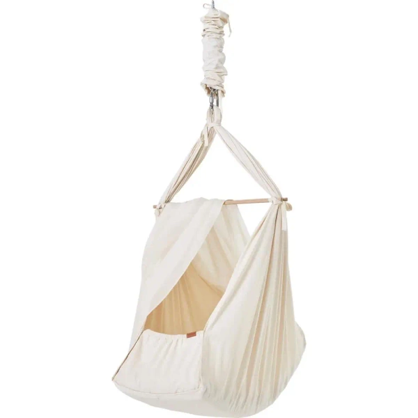 Hamak naśladuje bezpieczne objęcia rodzica i jego delikatne ruchy, dopasowując się do ciała dziecka. Znany również jako „kołyska sprężynowa”, zapewnia maluszkowi poczucie bezpieczeństwa i komfortu. To doskonałe rozwiązanie dla niespokojnych dzieci, które mają tendencję do krótkich drzemek. Dzięki odpowiednim akcesoriom możesz zamontować hamak niemal wszędzie.