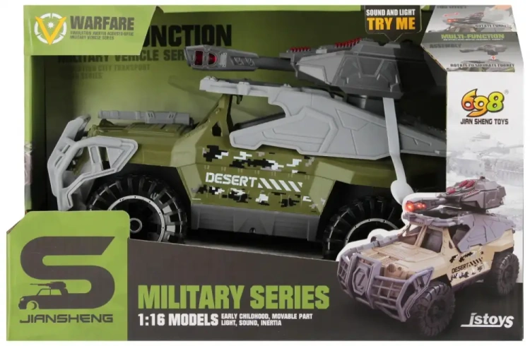 Pojazd został wykonany z trwałego plastiku, posiada efekty świetlne i dźwiękowe, które uatrakcyjniają zabawę i sprawiają, że wygląda jak prawdziwy wóz bojowy. Doskonały do zabawy w domu i na świeżym powietrzu. Zabawka, która pobudza wyobraźnię, rozwija koordynację i zapewnia godziny emocjonującej zabawy.