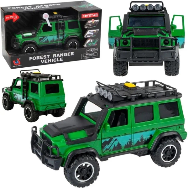 Przedstawiamy Forest Ranger Vehicle - duży, terenowy samochód w intensywnym, leśnym kolorze, idealny dla małych odkrywców i obrońców przyrody. Ta realistycznie wyglądająca terenówka jest gotowa pokonać każdy leśny szlak!