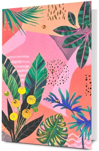 Kartka jest bogato i różnorodnie zdobiona (zależnie od wzoru: metaliczna folia, lakier perłowy,