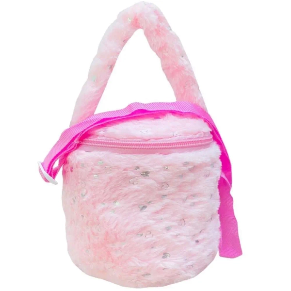 Przedstawiamy przeuroczą puszystą torebkę w kształcie walca, idealną dla małej księżniczki! To modny i funkcjonalny dodatek, który pomieści wszystkie skarby, a przy tym jest niezwykle miękki i przyjemny w dotyku.