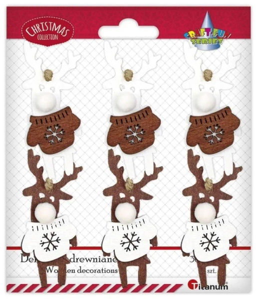 Zawieszki drewniane renifery w sweterkach 6szt - Titanum