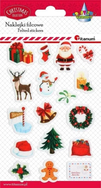 Naklejki filcowe Mikołaj, renifer, choinka, wianek, bałwanek, prezent, list, bombki mix 17szt.