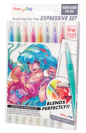 Brush Sing Pen Twin Expressive Set – 8 kolorów dla fanów mangi, anime i kreatywnego rysunku.