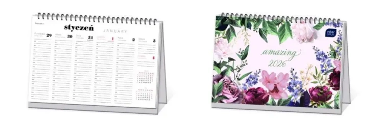 Kalendarz 2026 biurkowy tygodniowy Kwiaty - INTERDRUK