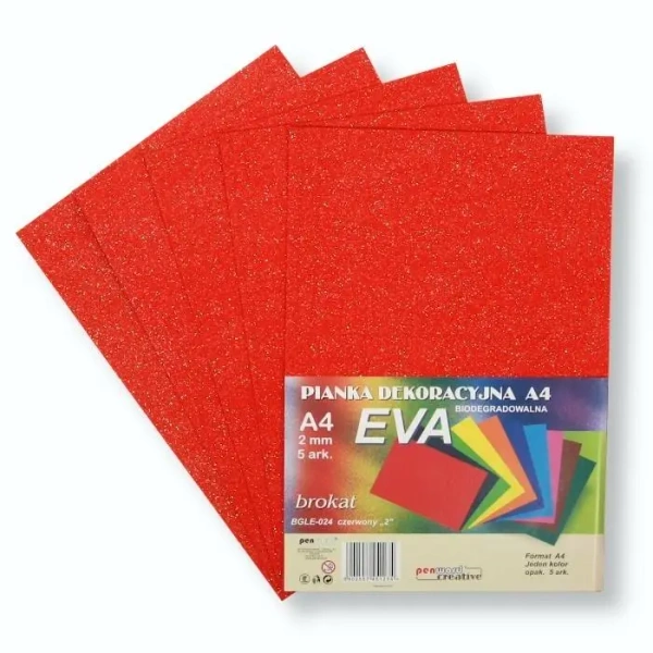 Pianka brokatowa A4 Eva czerwona biodegrad. 5szt - Penword