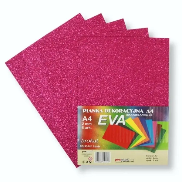 Pianka brokatowa A4 Eva fuksja biodegrad. 5szt - Penword