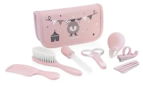 Ten zestaw składa się z elementów niezbędnych do codziennej pielęgnacji dziecka: zakraplacza, aspiratora do nosa, grzebienia, fantastycznej szczotki z naturalnym włosiem, praktycznych nożyczek, obcinacza do paznokci i czterech pilniczków do paznokci.