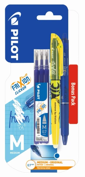 Pióro kulkowe Frixion Clicker Pilot granatowe + wkład granatowy x3 + zakreślacz żółty x1 blister