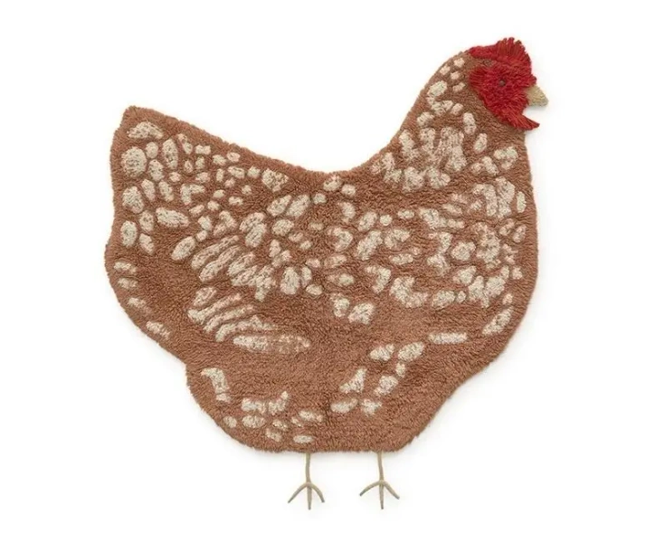 Koko, koko! Ręcznie wykonany dywan bawełniany Kura z kolekcji Farm to uroczy i funkcjonalny element wystroju pokoju dziecięcego. Z tłem w odcieniu terakoty i detalami w naturalnych kolorach, dywan idealnie odwzorowuje postać kury oraz jej pióra, a nogi zostały subtelnie wykończone sznurkowymi akcentami, co nadaje mu unikalnego charakteru. Wykonany z miękkiej, przyjaznej dla skóry bawełny, jest zarówno bezpieczny, jak i komfortowy w użytkowaniu. Dzięki możliwości prania w domowej pralce, utrzymanie go w czystości jest proste i wygodne. Dywan Kura to doskonały wybór dla rodziców, którzy szukają produktu łączącego estetykę, funkcjonalność i łatwość pielęgnacji, idealnie pasującego do każdego dziecięcego pokoju. Można go łączyć z innymi produktami z kolekcji Farm, tworząc inspirujący, wiejski klimat, który jest zarówno praktyczny, jak i pełen uroku.
