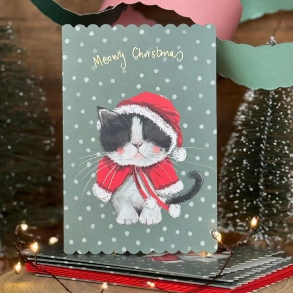 Wycinany karnet z kopertą, wewnątrz bez tekstu. Wyprodukowany w Wielkiej Brytanii.