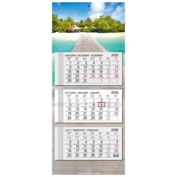 Kalendarz 2026 trójdzielny główka płaska Malediwy - EV-Corp