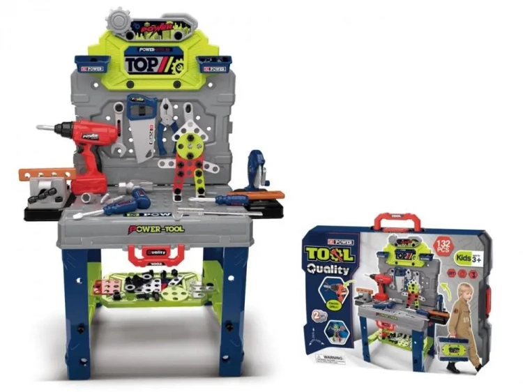 Warsztat narzędziowy z wiertarką B/O rozmiar produktu 81,5x58,5x31,5cm walizka 40x31x10cm