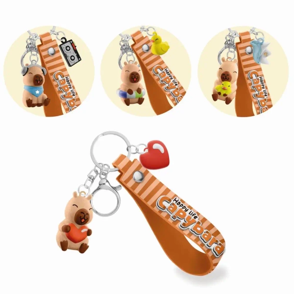 Modny silikonowy brelok do kluczy z uroczą zawieszką w kształcie kapibary i dopasowanym charmsem – Twoje klucze będą przyciągać wzrok!