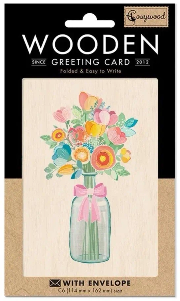 Karnet drewniany C6 + koperta Bukiet kwiatów - Cozywood