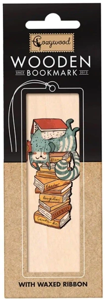 Zakładka drewniana Kot na książkach - Cozywood