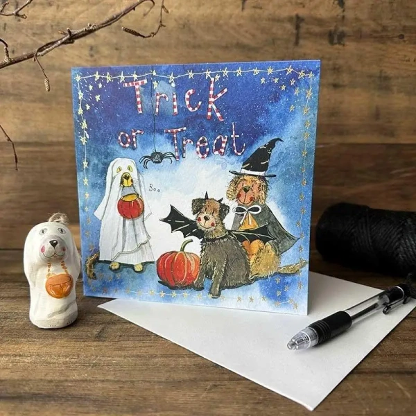 Karnet bez tekstu wewnątrz, w zestawie z białą kopertą. Wymiary 160 x 160 mm. Wyprodukowany w Wielkiej Brytanii.