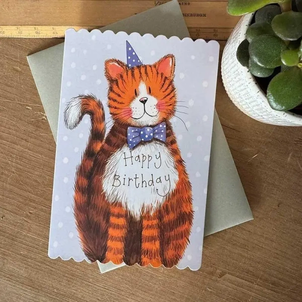Wycinany karnet z kopertą, wewnątrz bez tekstu. Wyprodukowany w Wielkiej Brytanii.