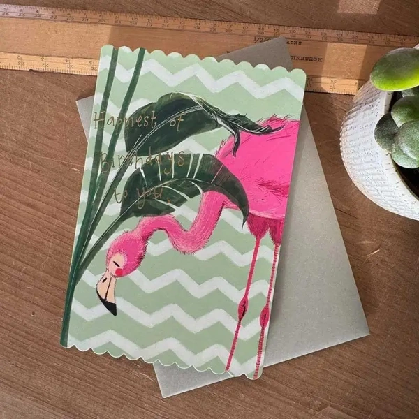 Wycinany karnet z kopertą, wewnątrz bez tekstu. Wyprodukowany w Wielkiej Brytanii.