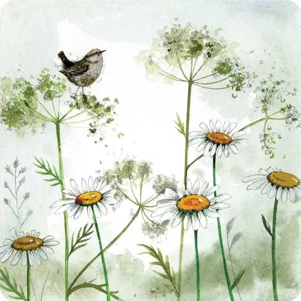 Podkładka pod kubek Strzyżyk i stokrotki - Alex Clark