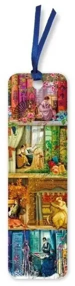 Pozłacana, papierowa zakładka do książki z ozdobną wstążką.