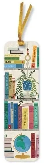 Pozłacana, papierowa zakładka do książki z ozdobną wstążką.