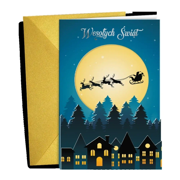 Kartka z życzeniami z dopasowaną kolorystycznie kopertą. Ozdobę stanowi folia hold i elementy 3D. Całość zabezpieczona folią typu"open".