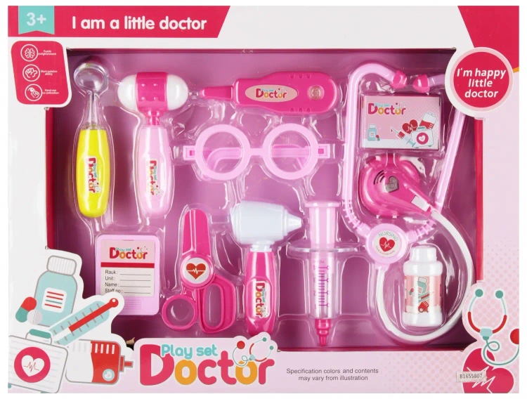 Zalety produktu pobudza wyobraźnie dziecka, nauka opieki nad chorym, rozwija kreatywność dziecka, posiada efekty świetlne- lusterko stomatologiczne się świeci. MEGA CREATIVE przedstawia Zestaw Lekarski ze wszystkimi niezbędnymi przyrządami lekarskimi. Z tym zestawem, wszyscy pacjenci zostaną wyleczeni Zawartość zestawu stetoskop, młoteczek, lustereczko, okulary, termometr, leki, strzykawka, otoskop, nożyczki, identyfikator. Całość wykonana z plastiku oraz papieru. Wymiary/waga/baterie wymiary produktu dł. x wys. x gł. cm młoteczek 6x12x3, wymiary opakowania dł. x wys. x gł. cm 42x32s4 , waga produktu bez opakowania kg 0,19 kg, waga produktu w opakowaniu kg 0,27 kg, wymaga zasilania bateriami 2 x AG13- załączono do zestawu. Zestaw przeznaczony dla dzieci w wieku 3 . Pakowany w kartonik z okienkiem. W kartonie zbiorczym po 36 szt.
