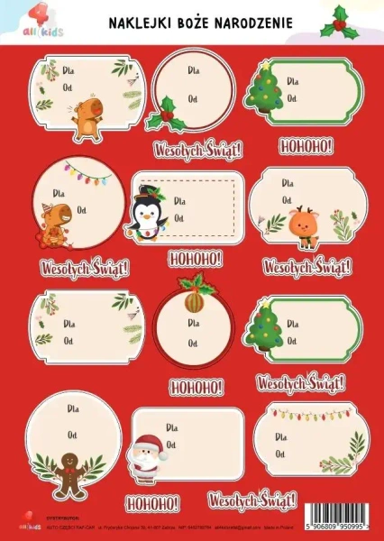 Naklejki na prezenty Boże Narodzenie A4 - All4Kids