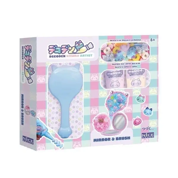 Zostań małą projektantką stylu! Dzięki kreatywnemu zestawowi **NICE Decoden** każde dziecko od 6. roku życia może samodzielnie ozdobić własne akcesoria do pielęgnacji lusterko i szczotkę. To nie tylko świetna zabawa, ale też okazja, by stworzyć unikatowy komplet, którego nie ma nikt inny!