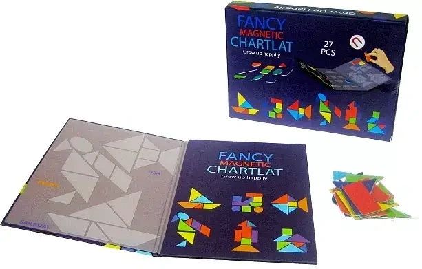 Na grę składa się instrukcja, która zawiera wzory obrazków do ułożenia oraz 27 elementów, z których dziecko może tworzyć samodzielne układy, wedle własnej wyobraźni. Gra mocno wspiera samorozwój najmłodszych – uczy kolorów, kształtów, rozmiarów.