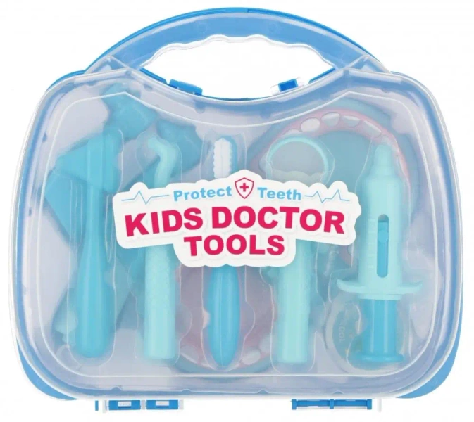 Zawartość zestawu: szczęka, szczoteczka do zębów, lusterko dentystyczne oraz inne niezbędne narzędzia dentystyczne, strzykawka, wiertło. Całość wykonana z plastiku. Wymiary/waga/baterie: wymiary produktu (dł. x wys. x gł.)[cm]: szczęka 10x7x10,