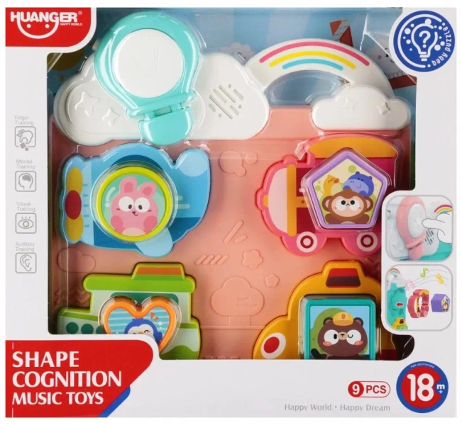Edukacyjny zestaw zawiera tablicę i puzzle w różnych kształtach i kolorach, wykonana z bezpiecznych, trwałych materiałów, wspiera naukę rozpoznawania kształtów, kolorów i kombinatoryki, lekka i poręczna i łatwa do zabrania w podróż.