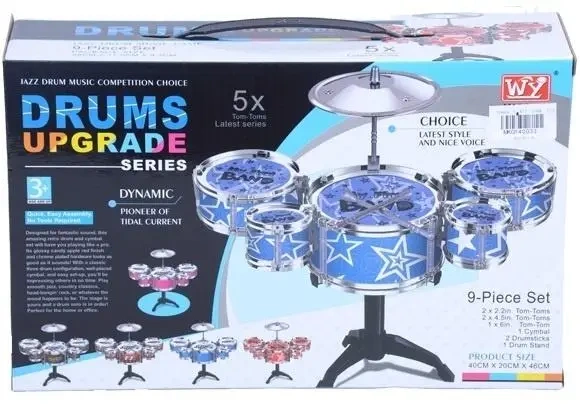 Odkryj rytmiczną zabawę z 9-częściowym zestawem perkusyjnym Jazz Drums Upgrade Series. Ten dynamiczny zestaw zaprojektowany z myślą o fantastycznym brzmieniu i wygląda jak profesjonalna perkusja z chromowanymi akcesoriami. Idealny do nauki i improwizacji w stylu retro, jazz, classic, rock i disco. Komplet zawiera 5 różnych rozmiarów tom-tomów, jeden talerz, dwie pałeczki oraz stabilny stojak na bębny. Montaż jest szybki i niezwykle prosty nie wymaga użycia żadnych narzędzi. To doskonały sposób na rozwijanie poczucia rytmu i pasji muzycznej u dzieci w wieku 3 lata i starszych. Zestaw świetnie sprawdzi się jako solowy instrument lub element zespołu. Idealny do domu lub biura. Wymiary produktu to 40 cm x 20 cm x 46 cm. Wybierz jakość i styl z serii Drums Upgrade.